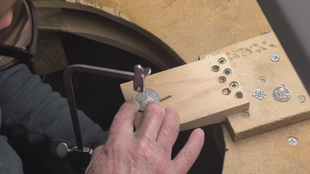 For our enamelled tie pins, we take a genuine coin, solder the...