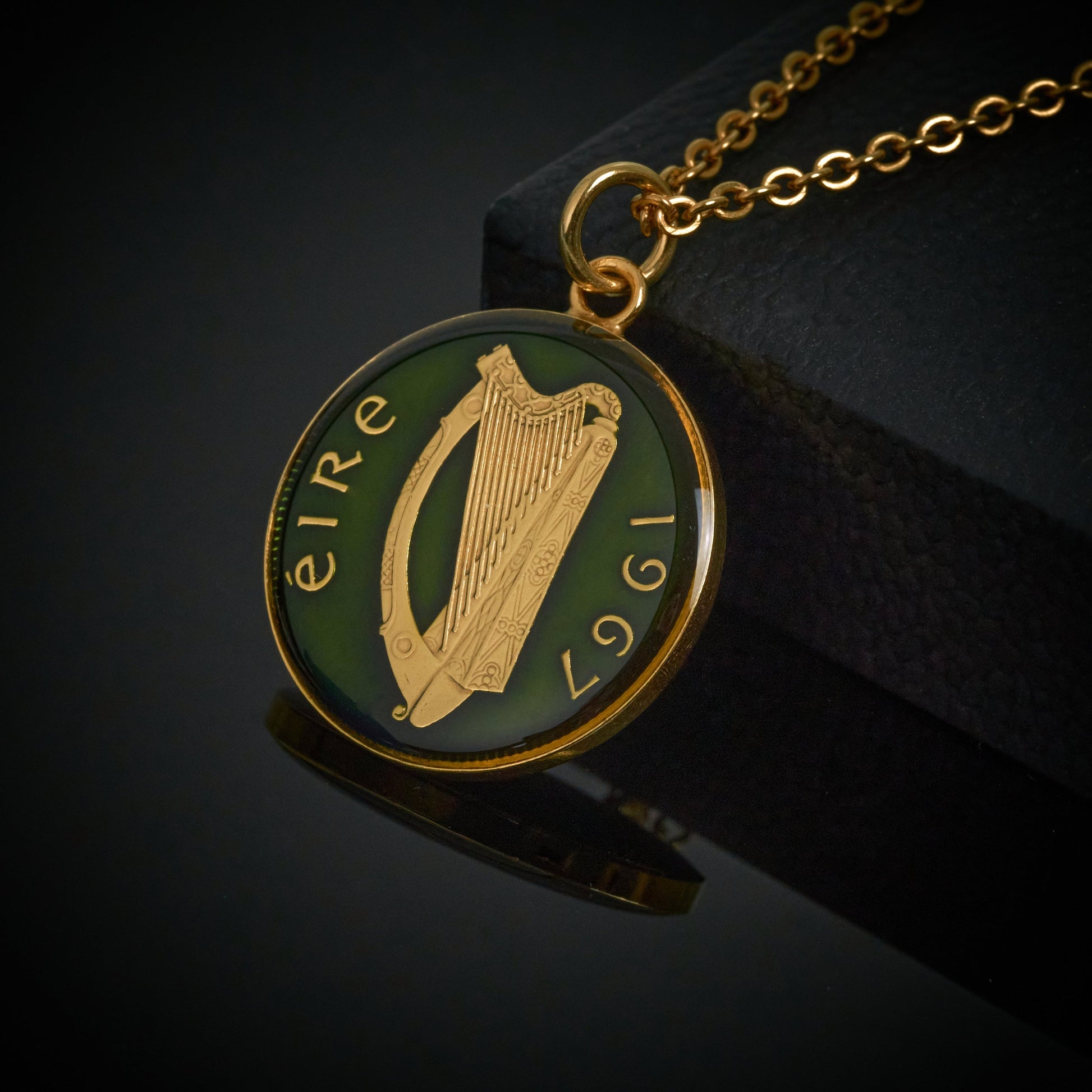 This necklace has been made using an Irish Sixpence. This coins design is an Irish Wolfhound.