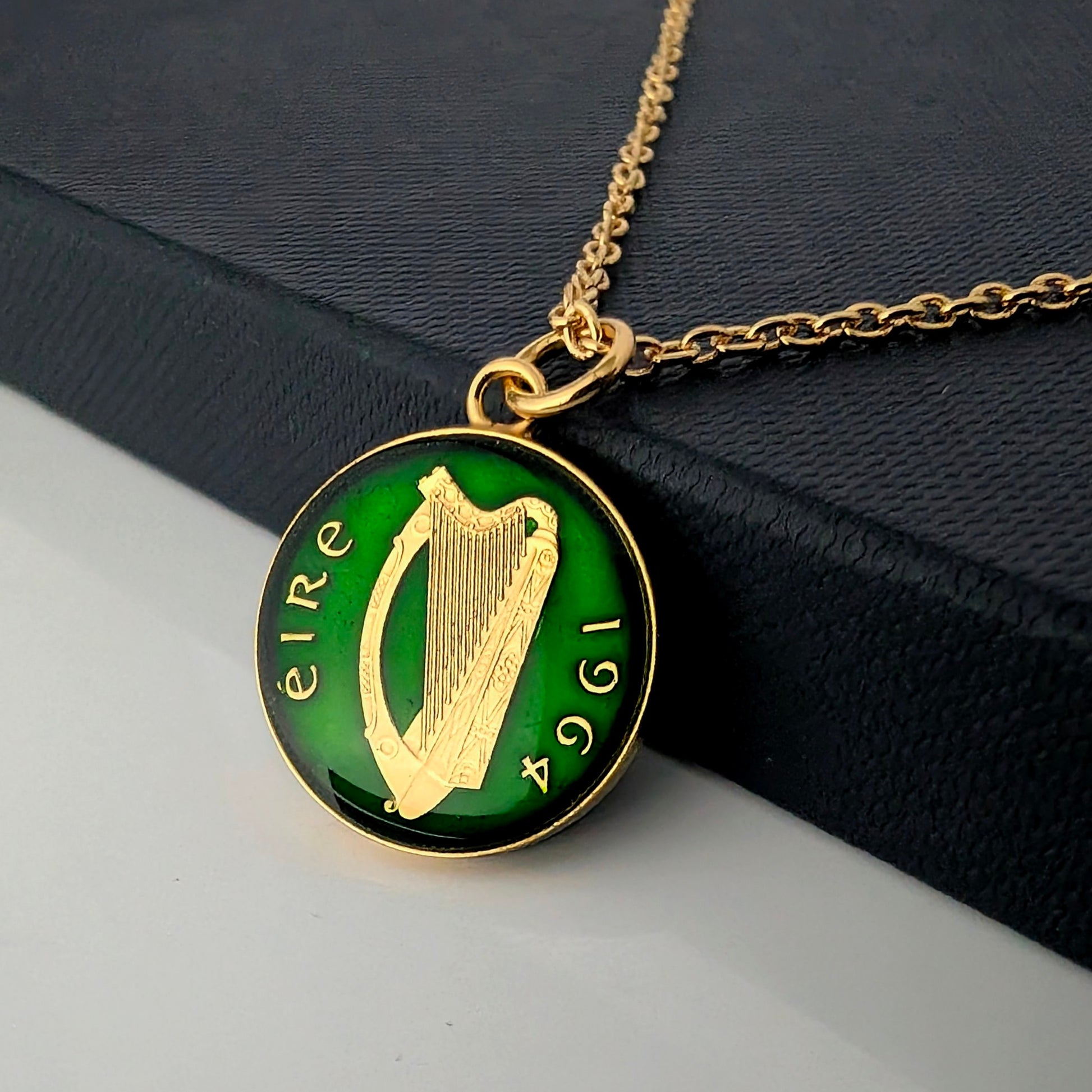 This necklace has been made using an Irish Threepence. This coins design is an Irish Hare.